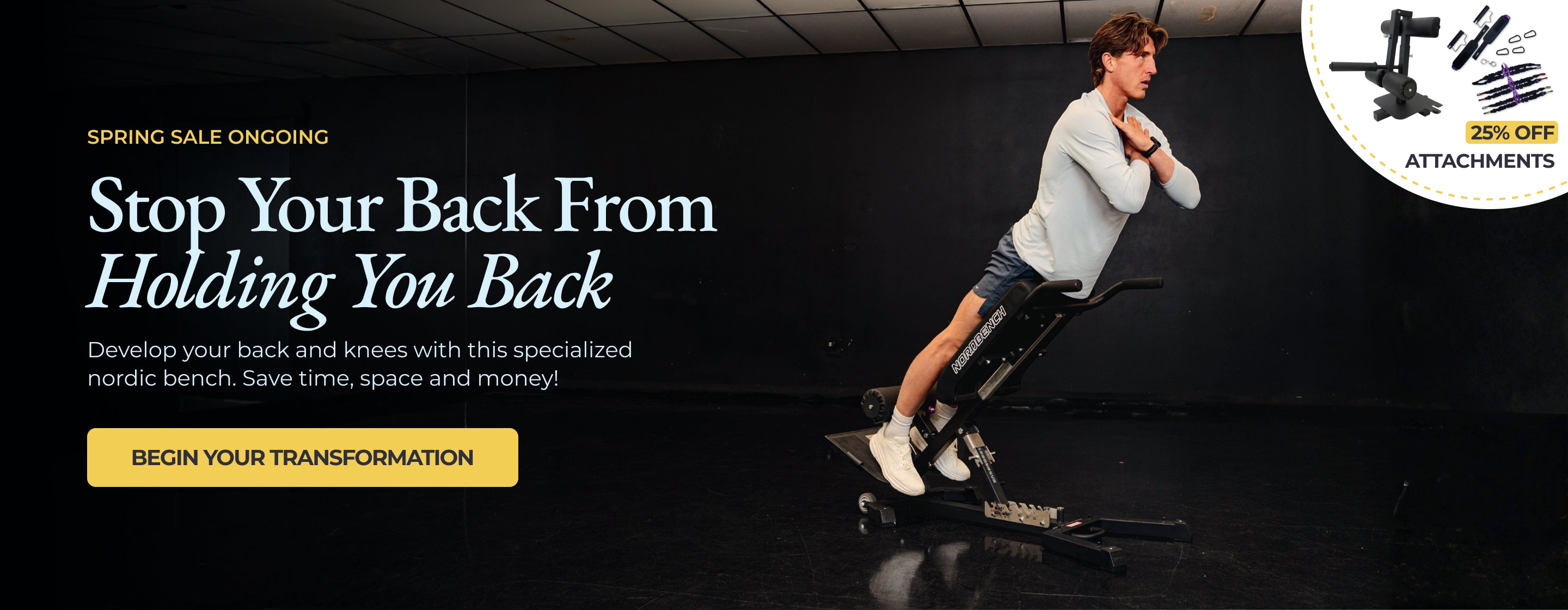 More than you'd think. Our benches and attachments train Nordic curls, back extensions, dips, glutes, hamstrings, sit-ups, split squats, and every major muscle group in between.