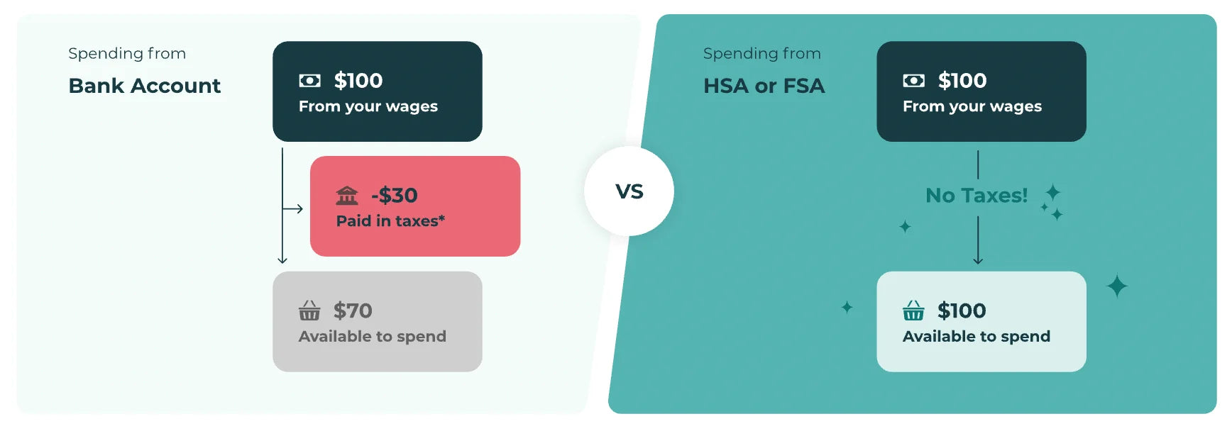 Because HSA and FSAs use pre-tax money, you essentially have more purchasing power with your dollars. Instead of paying post-tax income on health items, qualified customers can use pre-tax funds to invest.