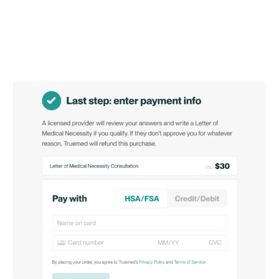 If you pay with your HSA/FSA card, there’s no other work you need to do. Truemed will send paperwork to ensure compliance. If you pay with your personal card, Truemed will send you reimbursement instructions.