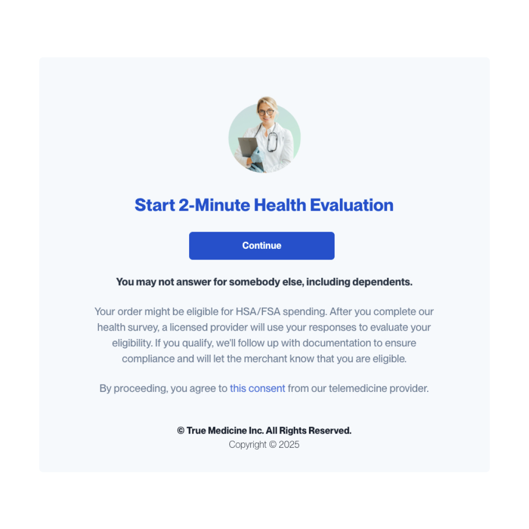 Answer a brief, guided health survey to confirm eligibility for HSA/FSA spending. A licensed professional will evaluate you based on your responses.