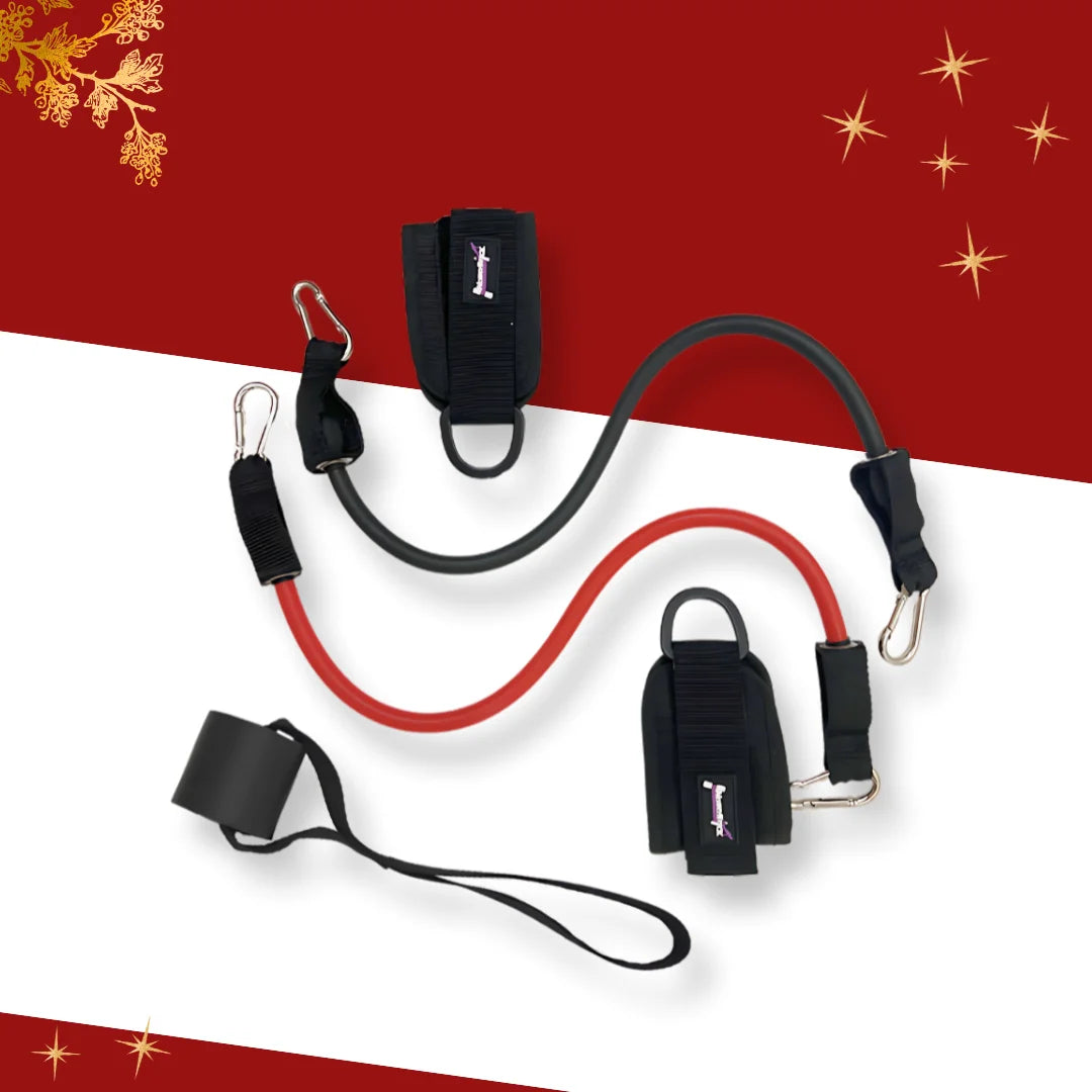 - Complete Kit: Includes two ankle cuffs, one medium band, one heavy band, and a secure door anchor.