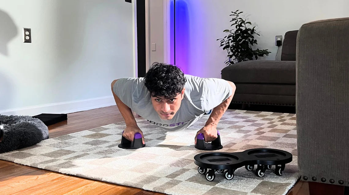The Multi Slider has four 360-degree wheels that move smoothly during core and leg workouts. It is designed with an anti-slip bottom, rubber footholds, and textured grips to provide stability and a secure hold on any surface.