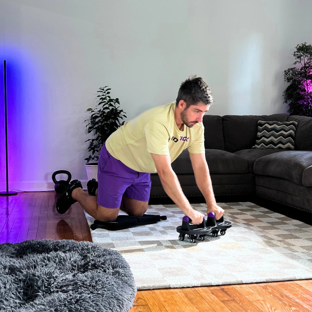 The Multi Slider has four 360-degree wheels that move smoothly during core and leg workouts. It is designed with an anti-slip bottom, rubber footholds, and textured grips to provide stability and a secure hold on any surface.
