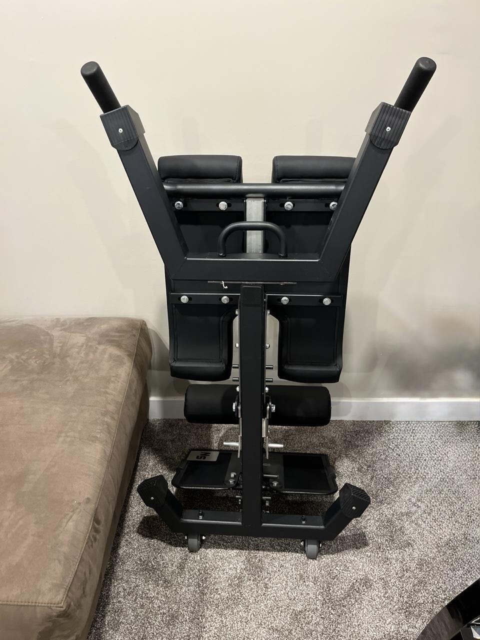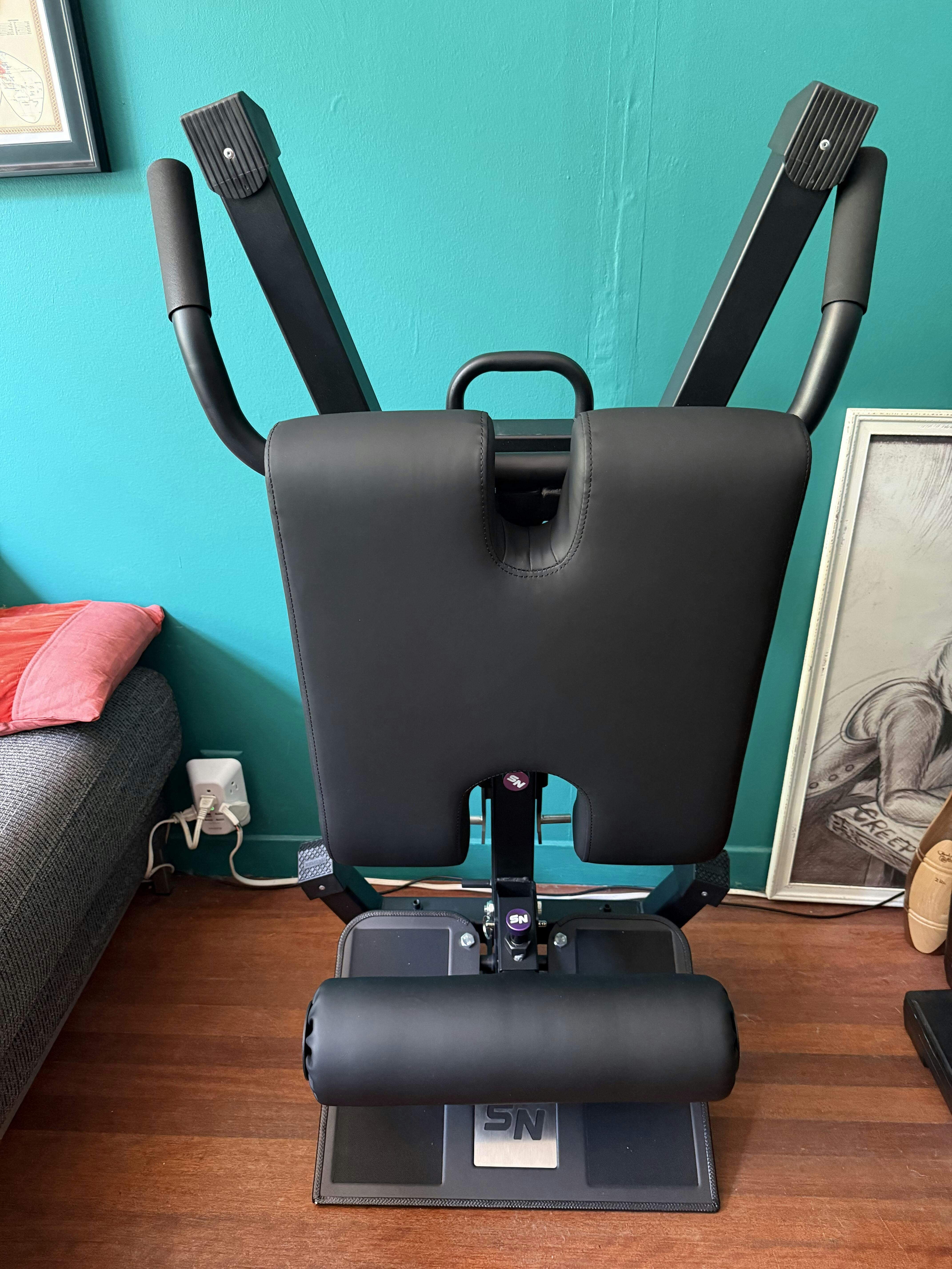 I bought this machine specifically for Nordic curls and back extensions. The padding is firm and supportive. I really enjoy that I can easily fold it up and store it in a corner. The magnets are strong, so I don’t worry about it crashing down.