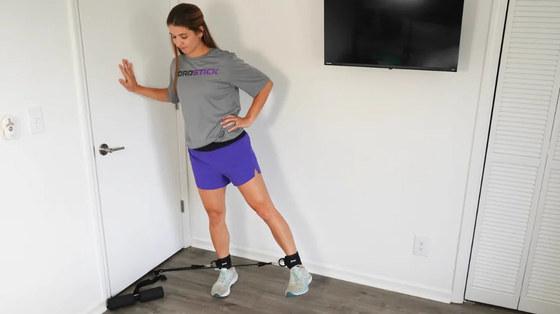 Up to 120 lbs of resistance for leg workouts, complete with ankle cuffs.